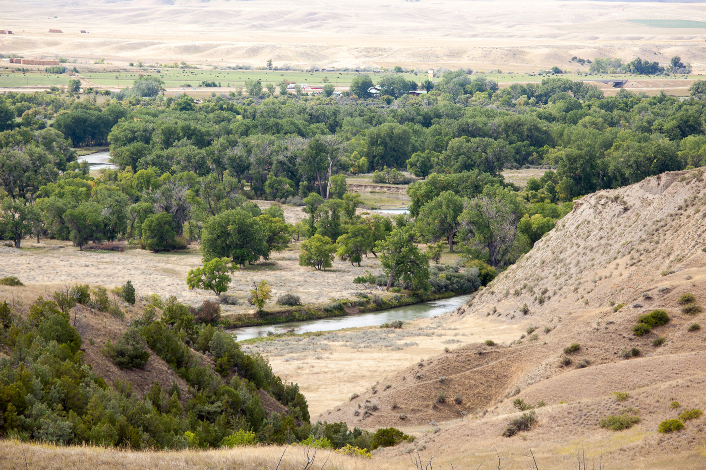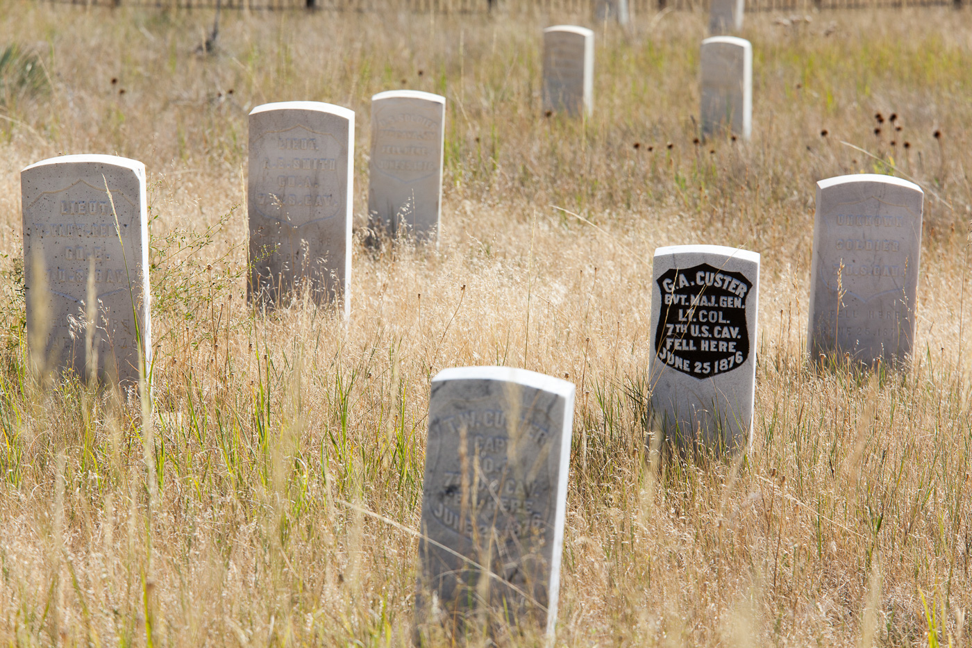 Little Bighorn Valley ligger hen, som den gjorde disse to afgørende dage i juni 1876. Det er et smukt, kuperet landskab med højderygge og talrige dybe kløfter med spredte grupper af træer. I bunden af dalen snor Litte Bighorn River sig fra syd mod nord med mange bugter og sving undervejs.
