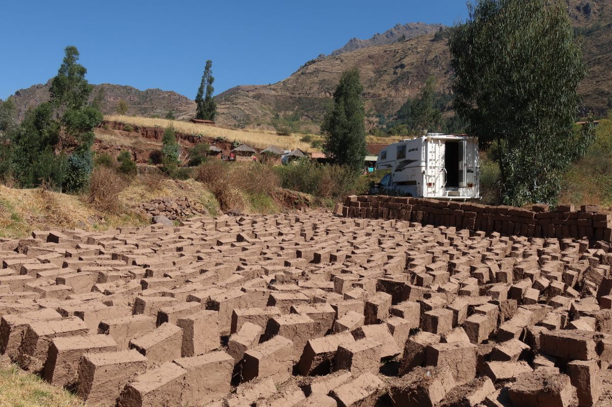 Hvorfor i alverden brænder man ikke stenene, så de holder meget længere? ville vi vide. Forklaringen er, at når solen skinner på et hus bygget af adobesten, bliver stenene varme og holder på varmen om aftenen, når det bliver koldt. I denne højde over 3.000 meter over havet falder temperaturen til omkring frysepunktet om natten. Brændte sten er derimod kolde. Sten bruges kun til fundamenter, for at huset ikke skal fal de sammen i regnvejr.