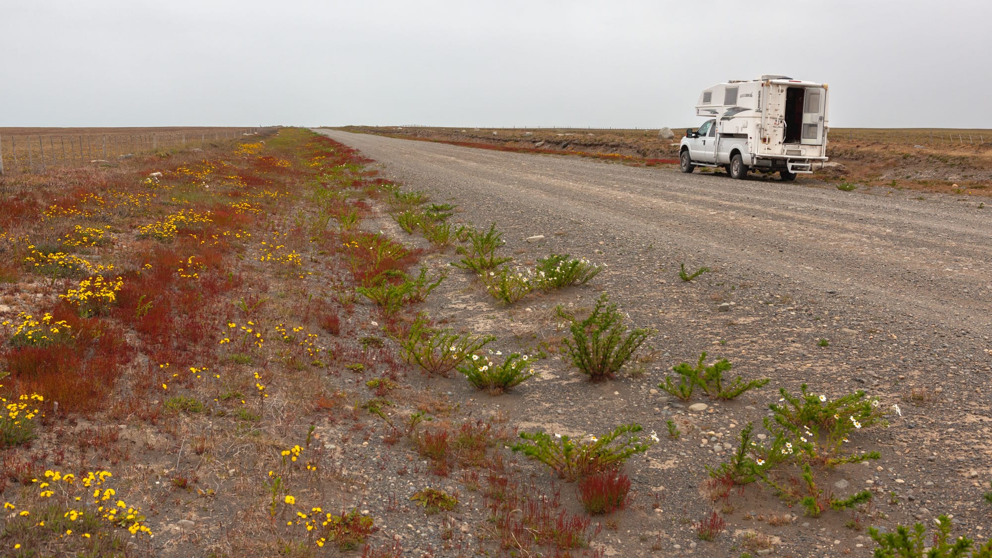 Guiden ved Andreas Madsens hus fortalte, at hun ligesom mange andre sæsonarbejdere i El Chalten boede i en camper, og at de alle var bundet fast med stropper for ikke at vælte i vinden. Også i dag var vinden så hård, at det ikke var nogen fornøjelse at være ude. Derfor bestemte vi os til at køre. På trods af blæsten. De første 90 kilometer gik det nemt med vinden i ryggen. Da vi kom ud på Ruta 40, kom sidevinden, så det gjaldt om at køre forsigtigt.