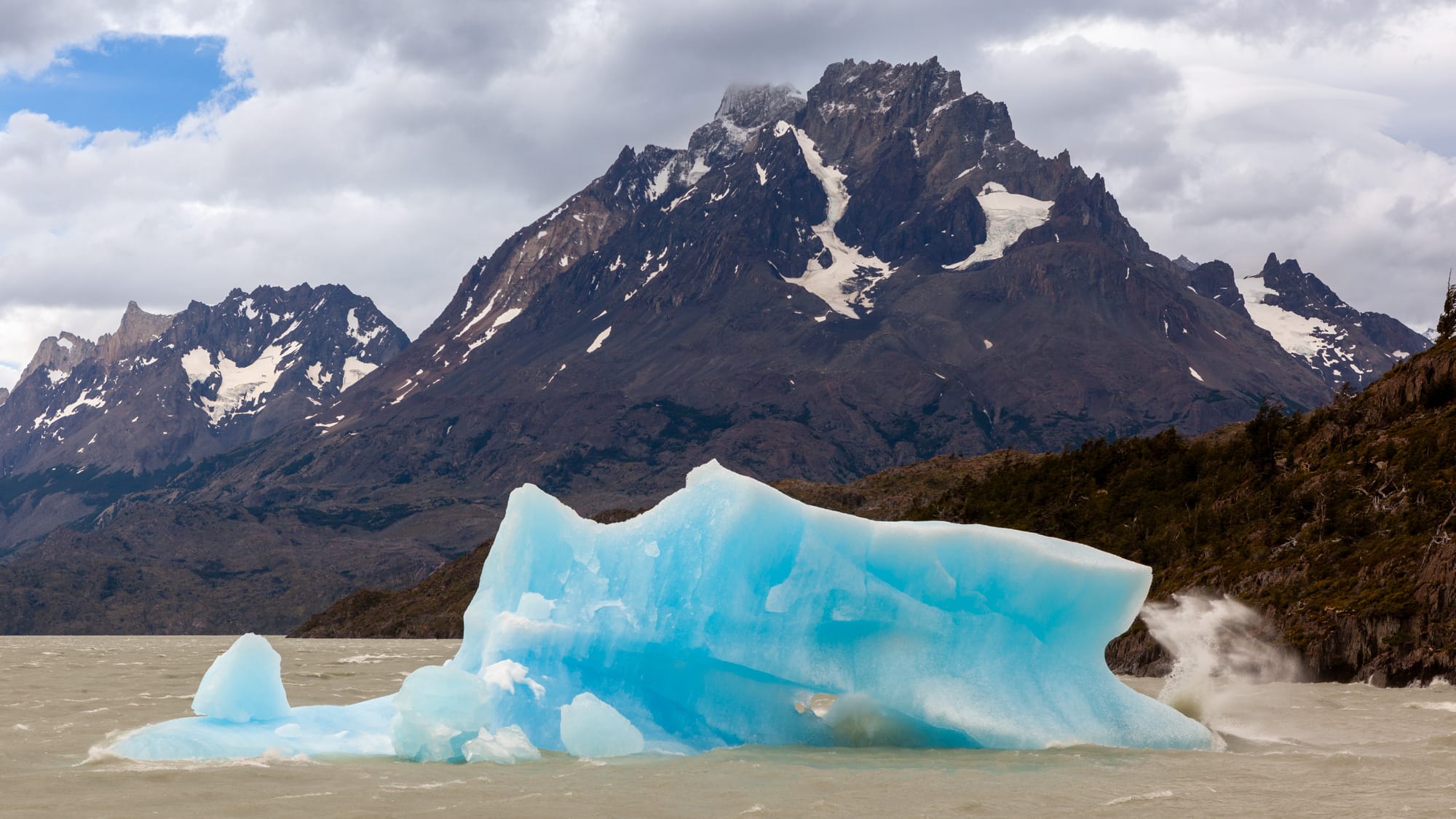 Vi fik anbefalet at køre til et sted, hvor man kunne gå en tur over en naturlig sanddæmning og videre til en udsigt over nationalparken. Så langt nåede vi dog ikke. Men i den anden ende af sanddæmningen lå et lille isbjerg, som var et afbræk fra en bræ. Det var fin blå is, som tog sig ud på mange forskellige måder alt efter, hvilken vinkel man så den i. Vinden var hård og isnende kold, så det satte også sit præg på turen.