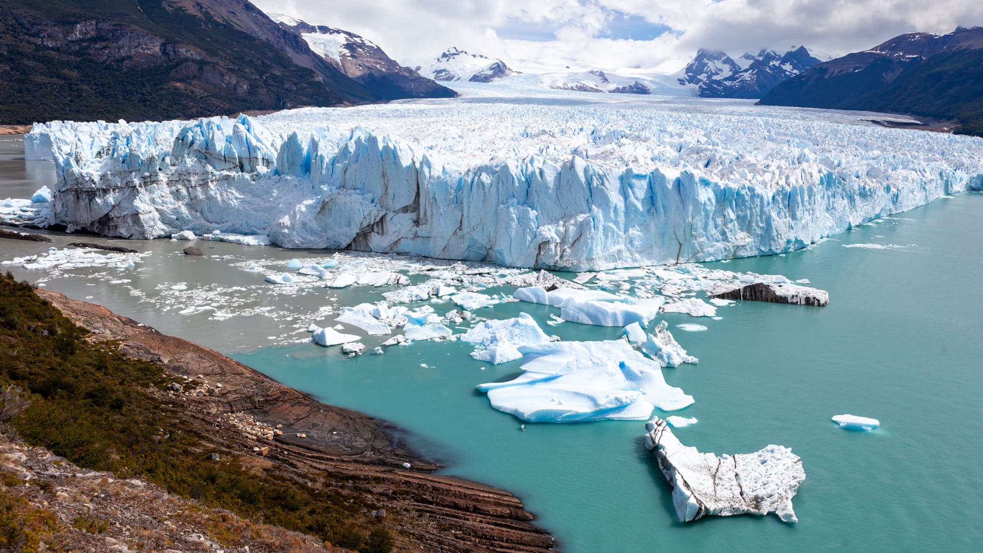 De fleste, der kommer til El Calafate, kommer for at se den kæmpemæssige bræ Glaciar Perito Moreno. Den ligger 80 kilometer vest for byen. Det er masseturisme i stor stil, og det forstår man godt, når man har set bræen. Området er dog så stort, at der kun er trængsel enkelte steder. Isfronten er 5 kilometer lang og 70 meter høj over vandet. Den er så stor, at større bræer kun findes i Antarktis, Grønland og Island. En gang imellem kunne man høre det buldre og brage i isen, og var man heldig kunne man se et stykke brække af. Det lykkedes os faktisk. Stykkerne gled videre i vandet som isbjerge. Glaciar Perito Moreno er en brætunge fra den meget store iskappe, som hedder Los Glaciares, og som strækker sig over 100 kilometer nordpå.