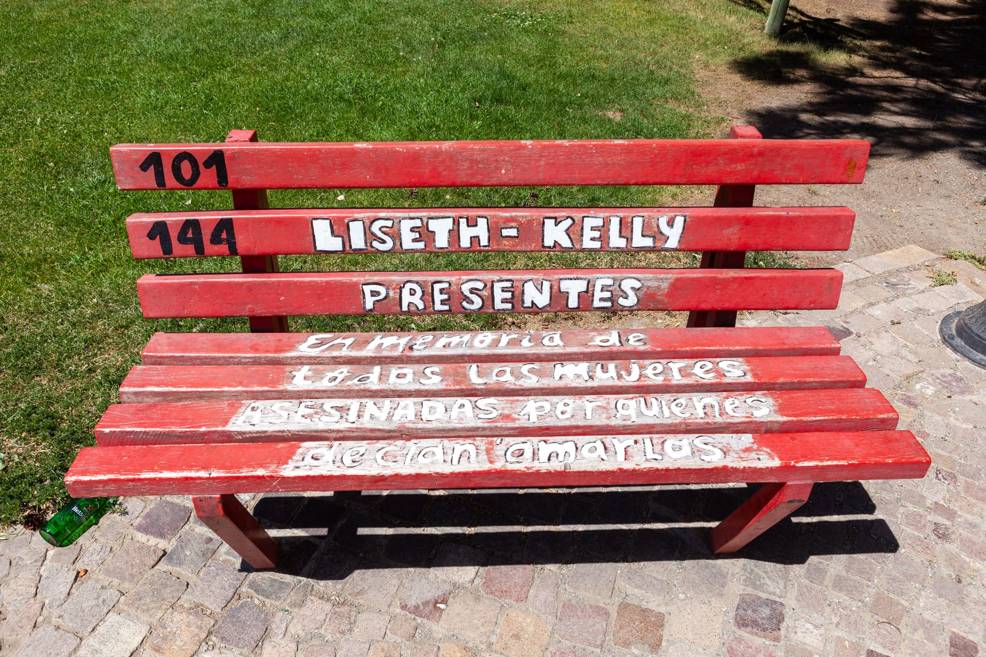I en nydelig park i centrum stod en bænk med følgende tekst: ”Til minde om alle de kvinder, der er dræbt af nogen, som sagde, at de ville elske dem.” Drab på kvinder begået af familiemedlemmer er et stort problem i Argentina.
