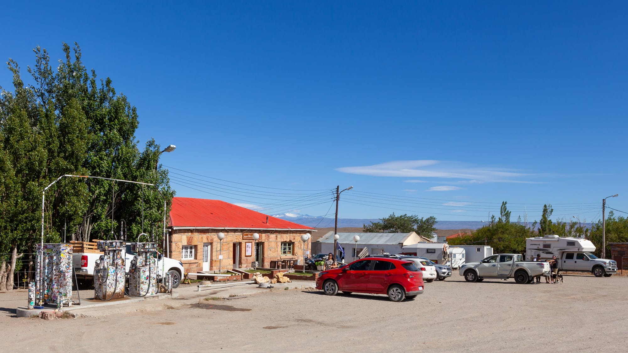 Sidst på dagen kom vi til Bajo Caracoles, som kun er en samling huse. Afstand 226 kilometer med ingenting imellem bortset fra et ensomt beliggende hotel. Ifølge mine oplysninger bor der kun 100 mennesker i Bajo Caracoles. Der er ingen mobildækning, og på den lille tankstation, som også var købmandsbutik og hotel, kunne man kun betale med kontanter. Det var lidt kritisk, for vores kontantbeholdning var ved at slippe op. Men ved at supplere med en dollarseddel, lykkedes det at få tanken fyldt op. Sidst vi ville hæve penge, var Western Union løbet tør for kontanter.