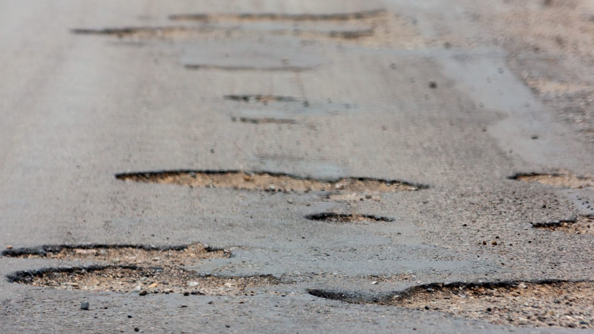 Efter en strækning med god asfalt måtte vi gå over til slalomkørsel udenom hullerne. Er der flest huller i højre vejside, kører man bare i venstre side. Det betyder ikke noget, fordi der er så lidt trafik.