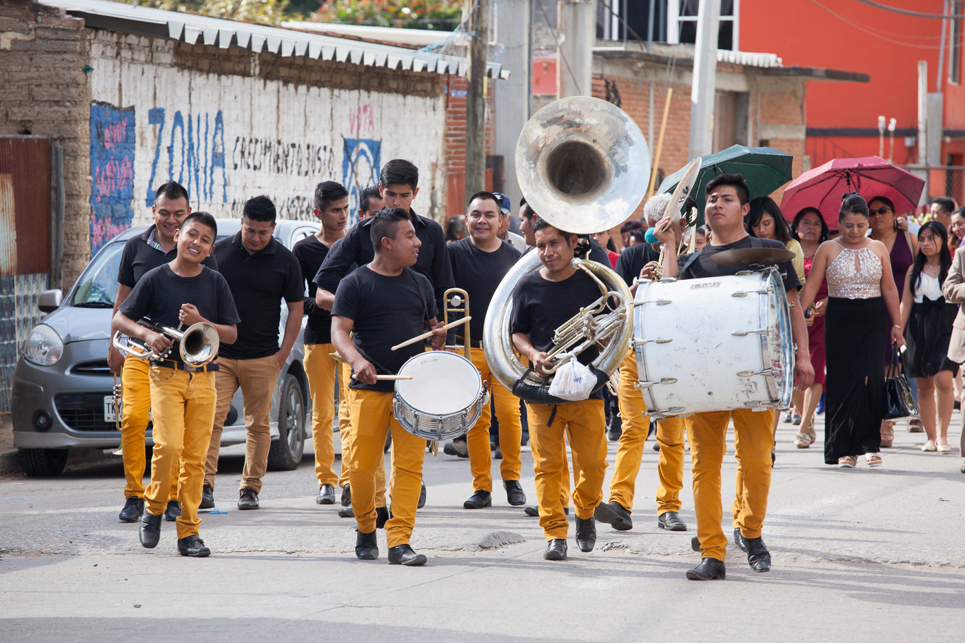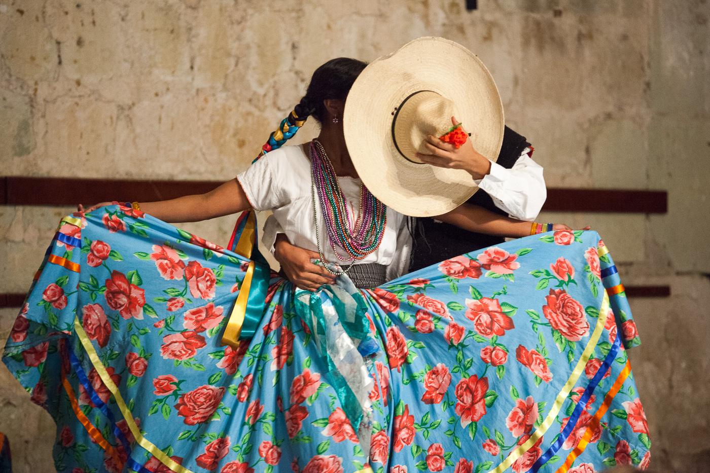 Dansere fra forskellige byer omkring Oaxaca optrådte i deres traditionelle klædedragter. Det var et farverigt skue, og det udtrykte en overvældende og smittende livsglæde. En dans bestod af, at en mand dansede omkring en kvinde som for at gøre kur til hende. I andre danse skubbede kvinderne til mændene, så de trimlede om på gulvet. I en tredje dans deltog der fem mænd og ingen kvinder. Det var et historisk optrin, hvor to mænd repræsenterede zapotekerne, to mixtekerne og den femte var aztekernes høvding Moctezuma.