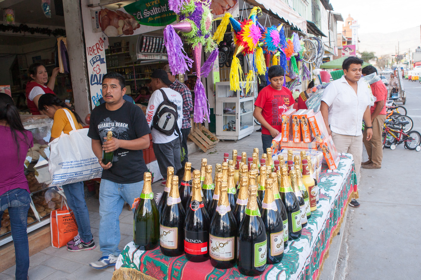 Markedet er kendt for at have stande med kunsthåndværk i form af tekstiler, og Ranveg fandt en bluse lige i den farve, hun gerne ville have. Hun var ikke helt utilfreds med, at hun fik prisen ned med en tredjedel. Markedet var stillet an i gaderne i bykernen. Der var temmelig trangt og et mylder af mennesker. En del larm var der også ikke mindst, fordi en højttalerstemme kunne høres hele tiden. Det var bogstavelig talt ”oplysning til borgerne om samfundet”, idet der blev oplyst om prostatakræft. Ellers mindede folkelivet om det, vi har oplevet i Tlacolula.