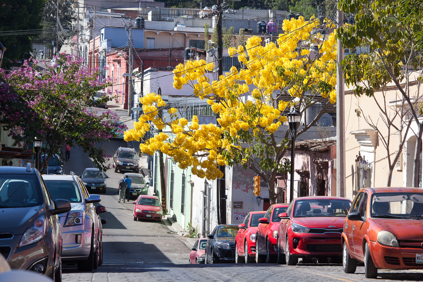 Vi tog en kollektivtaxi ind til centrum. Det vil sige, de kører kun på ringvejen, så man må gå ind til centrum. Der fandt vi en bus til Monte Alban.