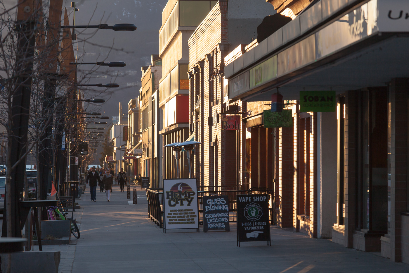Om eftermiddagen var vejret blevet godt, og gik vi bl.a. tur i downtown, der ligner en ”rigtig” by efter europæisk forbillede i stedet for de lange motorgader med en nærmest endeløs række af parkeringspladser og forretninger. Downtown viste sig endda at være rigtig charmerende. Man fik en tydelig fornemmelse af, hvordan det tidligere har været en ganske lille by en gang. Nu er det British Columbias største by udenfor Vancouver og Victoria. Den har en fin beliggenhed ned til Okanagan Søen.