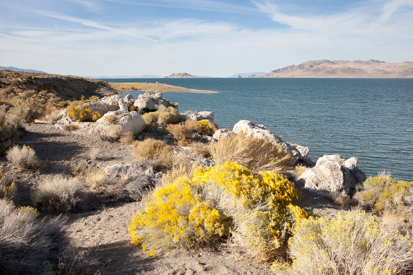 Vi tilbragte dagen ved den smukke Pyramid Lake. Den første europæer, der kom til området, gav søen dette navn på grund af en pyramideformet klippe. På det lokale indianske sprog hedder den selvfølgelig noget andet. Vi måtte købe et adgangskort for at bruge rastepladser, køre ned til stranden osv. Men så fik vi også tilladelse til at campere. Området er indianerreservat, og det ser meget bedre ud end mange andre, vi har set. Det er utroligt, at det tørre landskab kan give grundlag for menneskelig bosættelse, men de har boet her i årtusinder.