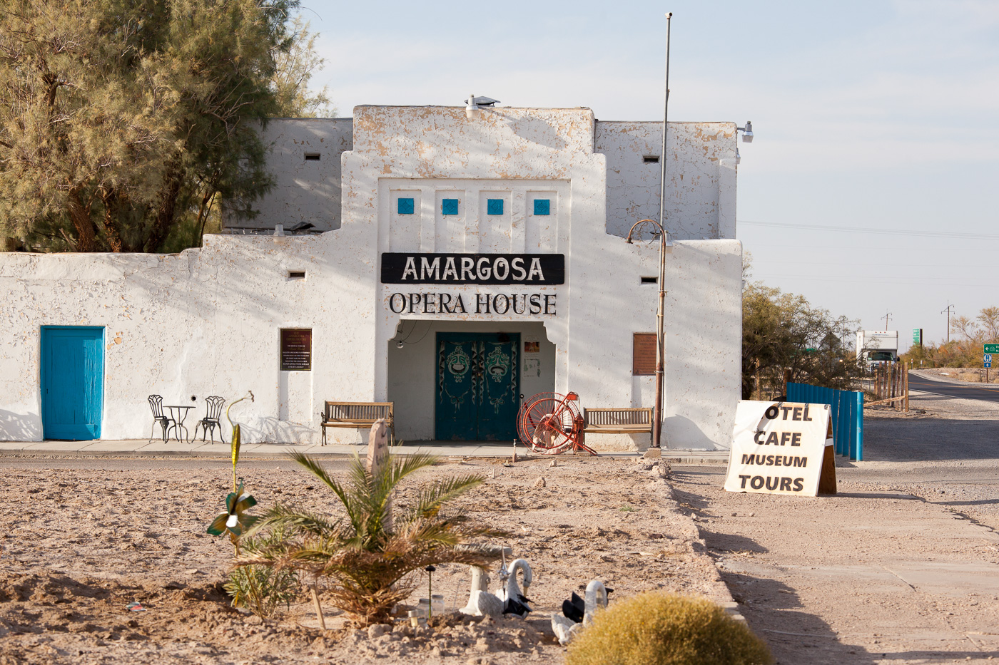 I dag skal vi se en balletforestilling i Amargosa Opera House, der ligger i Death Valley Junction en times kørsel fra Death Valley. Som navnet siger er det kun et vejkryds midt ude i ørkenen. Operahuset med tilhørende hotel og restaurant er den eneste bygning, der er i brug på stedet. En gang har der været en benzinstation, men den er for længst nedlagt. Bygningen står der endnu.